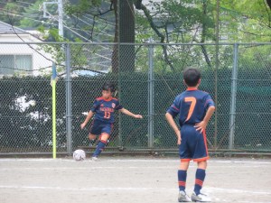 慶應SSさんはみんな2年生でしたが、そんなお兄ちゃん達を相手に幼稚園の2人はよく頑張りました。特に年長のツカサ! 目の前で蹴ってくるボールに対して、逃げたり避けたりせず、低い姿勢で身体の前に構えた小さな手で、何度もボールにチャレンジできました。かっこよかったよー。そして子供達はとにかく元気いっぱい。ボールに向かって行くのはいいことなんだけど、自分が蹴りたい気持ちが強くて、味方が蹴ってるボールも取ってしまうことが多くあったかなー。味方が敵に囲まれて困っているときは助けにいこう。困ってない時にいっちゃうと、逆効果になっちゃう時があるから気を付けよう。あと忘れないで欲しいのは、試合中お互いに声をかけあうこと。今日もせっかく菊田コーチがアドバイスしてくれたことを、試合中忘れちゃってる子がいたよねー。憶えている子は声をかけてどんどん教えてあげよう。