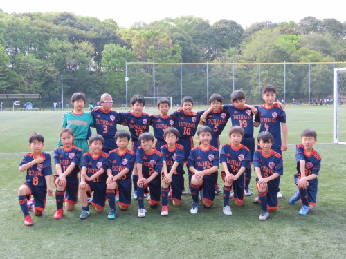 学年が上がり新キャプテンにオウスケ。ピカピカの1年生も仲間に加わり、初めての対外試合でしたが、みんな勢いよく元気にプレー出来ました。途中吉田コーチが作戦ボードを使って説明してくれた時は、みんなエライ集中して話しを聞いていて、吉田コーチがまるで紙芝居か読み聞かせのお兄さんのようでした(笑笑)。