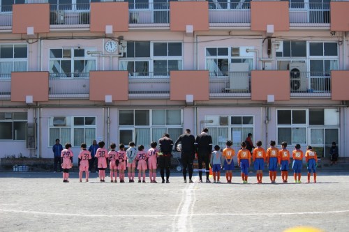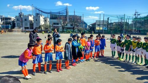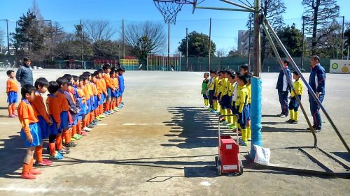 2/25(土)勝田SCさんにご招待いただき、勝田SCさん、港北FCさんとの三つ巴でのU11トレーニングマッチ(15分×6本/チーム)を行いました。(@勝田小学校)
