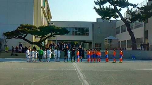 寒空の中、藤沢本町小学校にて1回戦を行いました。