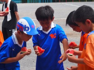 ボール扱いは相手が上だけど、前半は「行ける!」って感触で終了。後半もいい感じで熱いサッカーができていましたが、後半5分に追加点を許し終了。でも次に繋がる戦いができました。終わったあとの反省会もちょー悔しそうな選手たち。