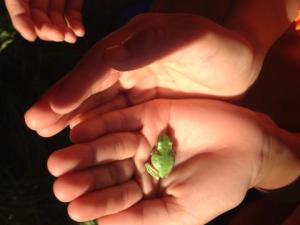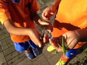 東名高速の事故渋滞に巻き込まれ、一時、足柄SAで待機する事に。 原っぱがあったので、遊んで過ごします