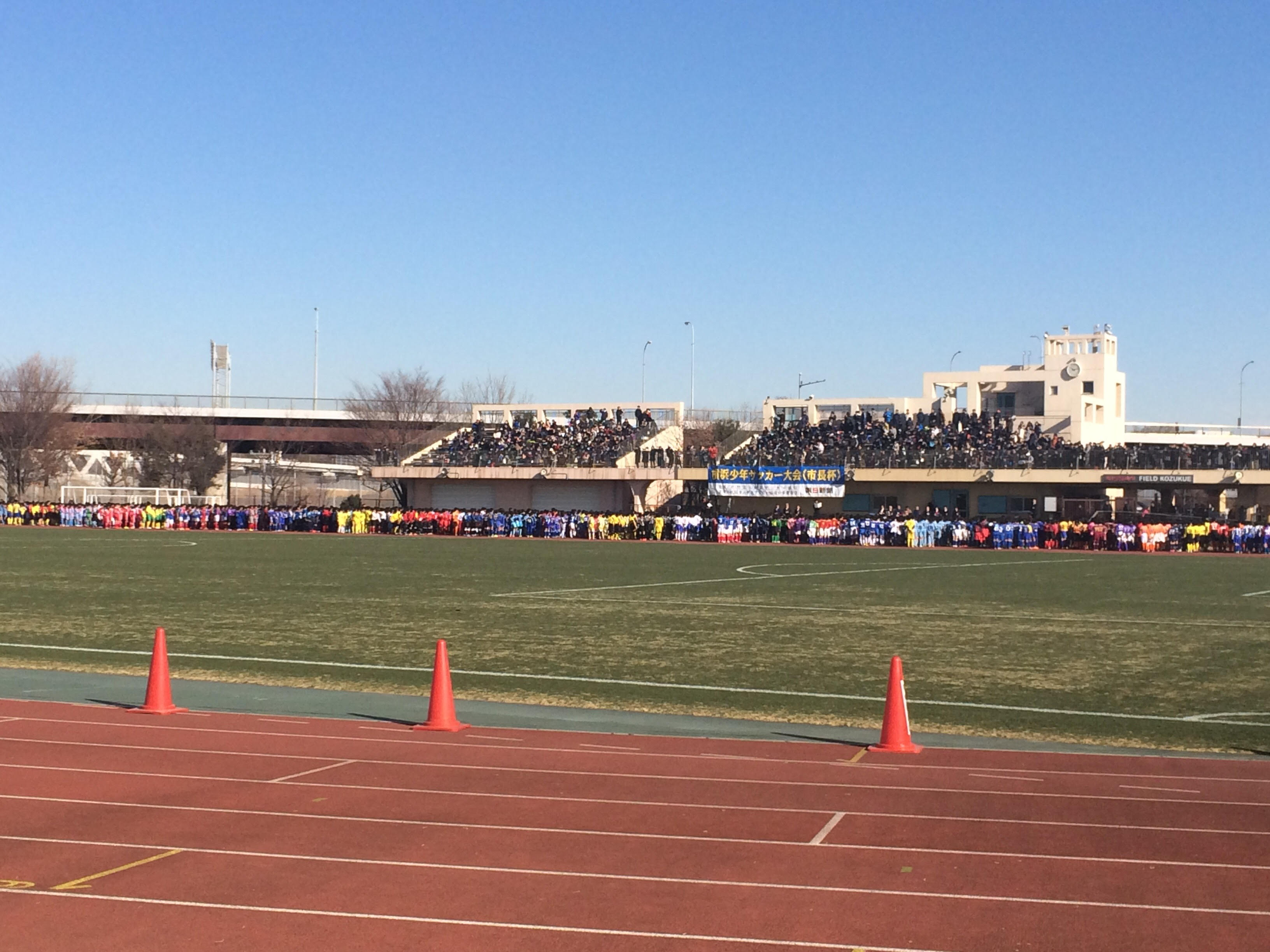 1/6(土)晴れ、第43回横浜少年サッカー大会(市長杯)開会式@日産フィールド小机がありました。