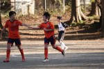 ■前半17分:右サイドで相手フリーキック、こぼれ球をアサヒがロングフィード。フウマがGKに競り勝ち、無人のゴールに蹴り込む。
