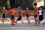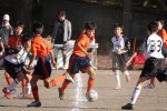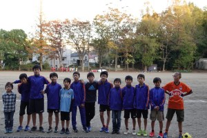 暖かい秋の日差しの中、三ツ池公園にて港北区大会3日目が行われました。相手は同じオレンジ色のユニホームを着ている大曽根SCさん。試合前のキャプテン同士のじゃんけんで勝利し、今回はホームユニホームをゲット!お、何か良い予感。グランドに向かう選手たちも、いつもより集中していた雰囲気の中、大曽根SCさんのキックオフで試合が始まりました。