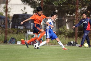 ・前半12分:右サイドのユウトの縦パスを受けたフウマがドリブルで持ち込み1人交わしてトゥーキックでシュート。ゴール左ポストにあたる。