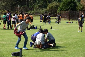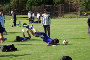 天然芝に慣れていないせいもあり、球足がやや弱く、序盤は狭い範囲でパスを繋ごうとしていた様子。川村コーチからロングフィードパスを使うよう激が飛びますが、中々繋がりません。パスの精度・トラップの技術の不足は否めませんでした。サッカーの“基本”である“止める・蹴る・運ぶ”の大切さを改めて感じさせられました。
